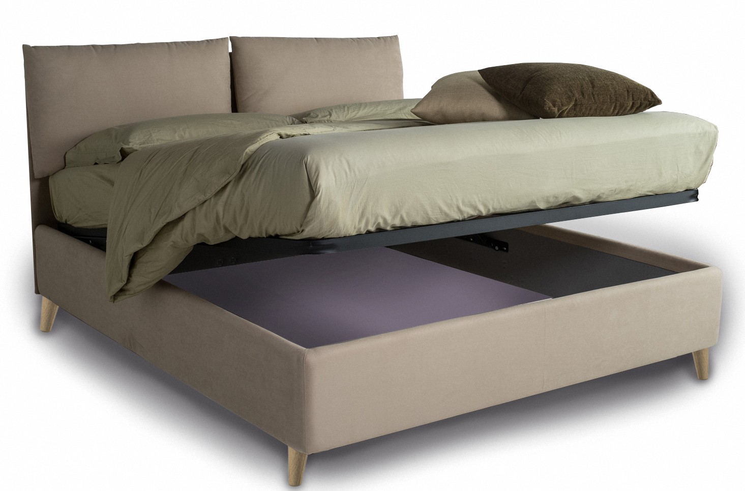 Le coffre du lit offre une grande capacité de rangement avec une hauteur utile de 21 cm, ce qui équivaut à un volume de 560 litres pour un couchage de 140 cm. Cela permet de stocker une grande variété d'objets, allant de la literie supplémentaire aux vêtements hors saison.